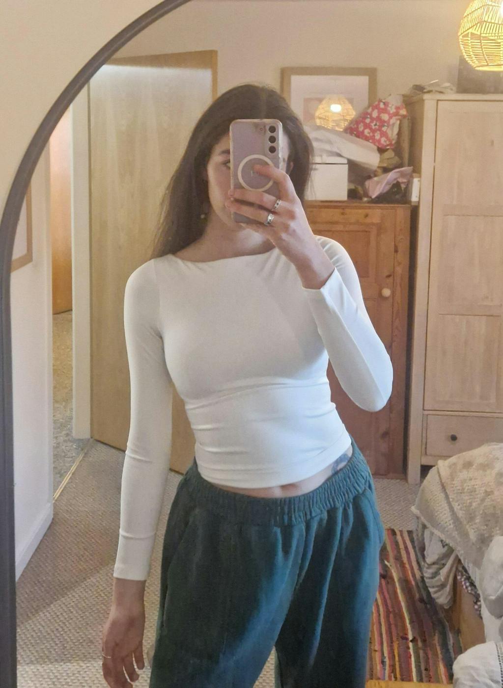 Level up your everyday wardrobe with our Slash Long Sleeve Top. The demure shape of the neckline perfectly frames the neck and shoulders, while the long sleeves and fitted KLAY fabric offer a sculpting silhouette. Wear with jeans, or pair with our Midi Skirt for head-to-toe elegance.