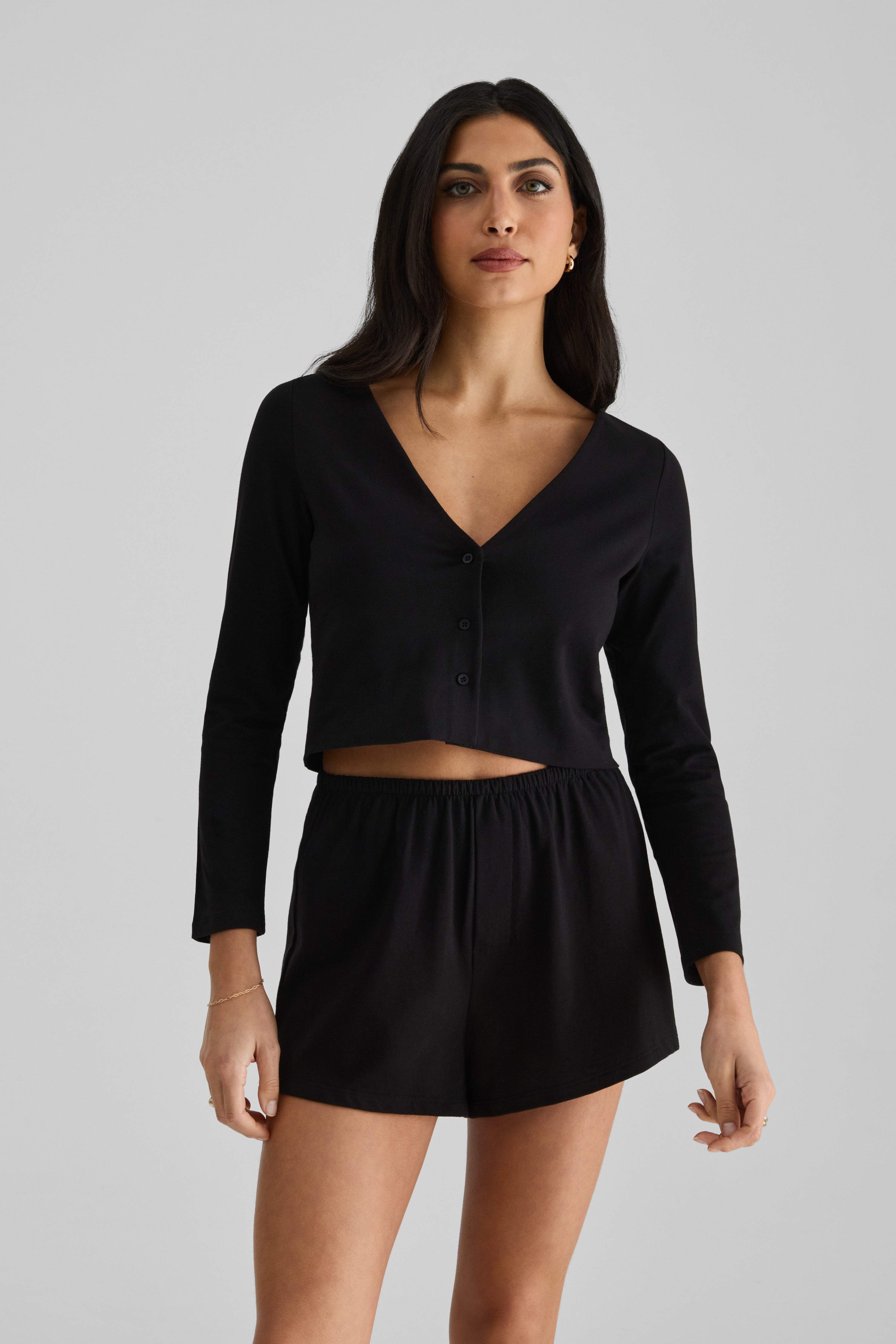 Perfect for lounging, sleep, and beyond, this Lounge Cardi is made from our cosy cotton blend with a hint of stretch for added comfort. Available in three shades, the classic silhouette features a V neck, button fastening and long sleeves. Layer over our Lounge Strappy top and pair with our Lounge Trousers for ultimate relaxation at home.