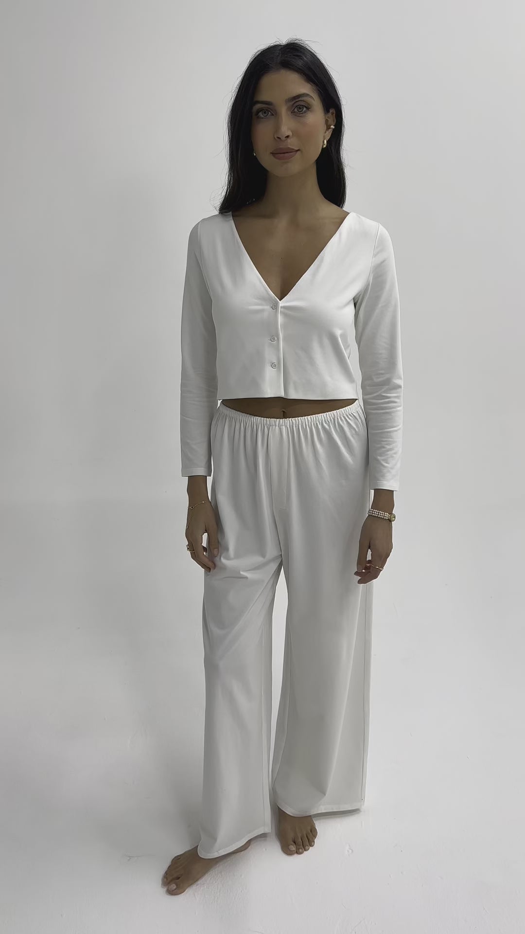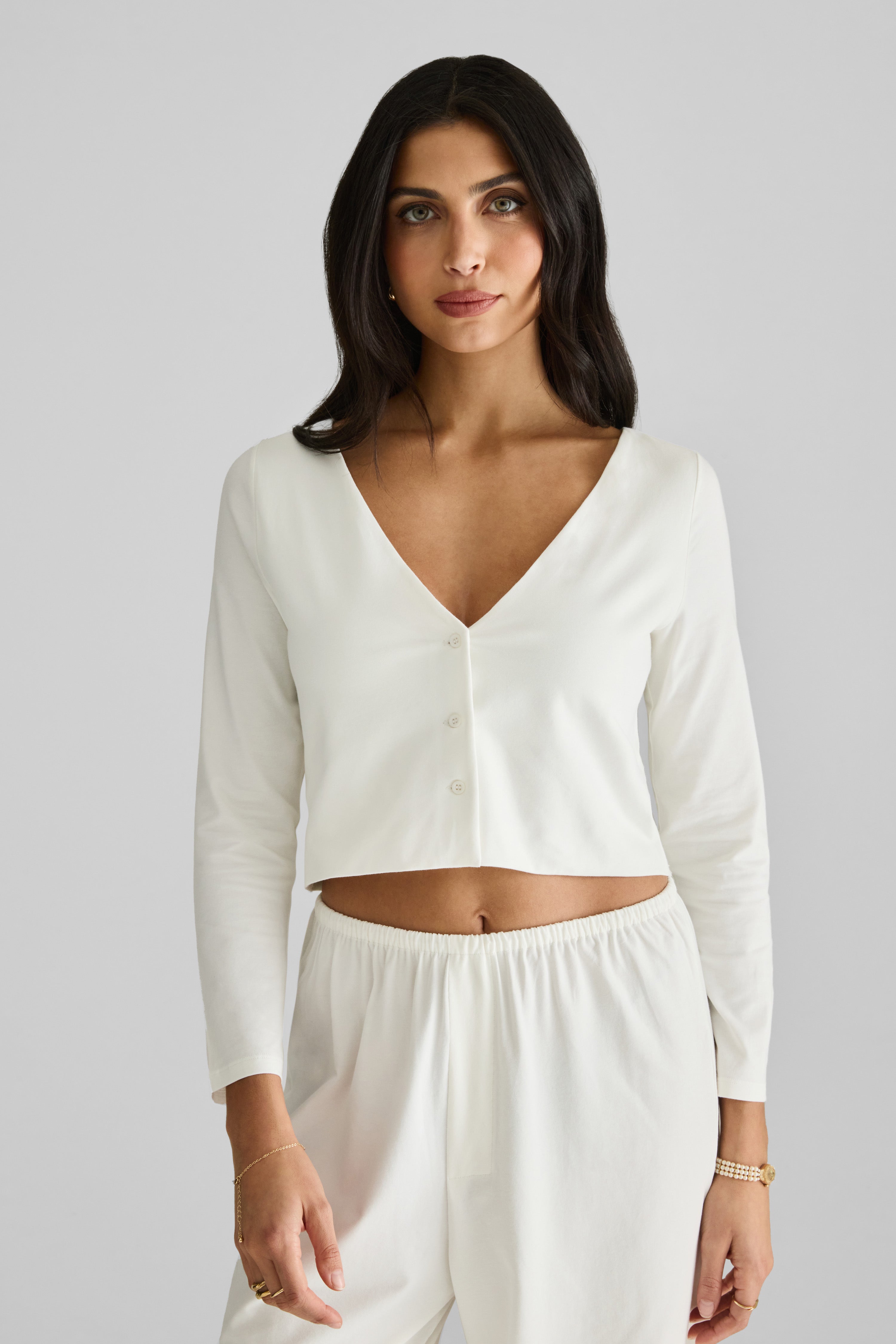 Perfect for lounging, sleep, and beyond, this Lounge Cardi is made from our cosy cotton blend with a hint of stretch for added comfort. Available in three shades, the classic silhouette features a V neck, button fastening and long sleeves. Layer over our Lounge Strappy top and pair with our Lounge Trousers for ultimate relaxation at home.