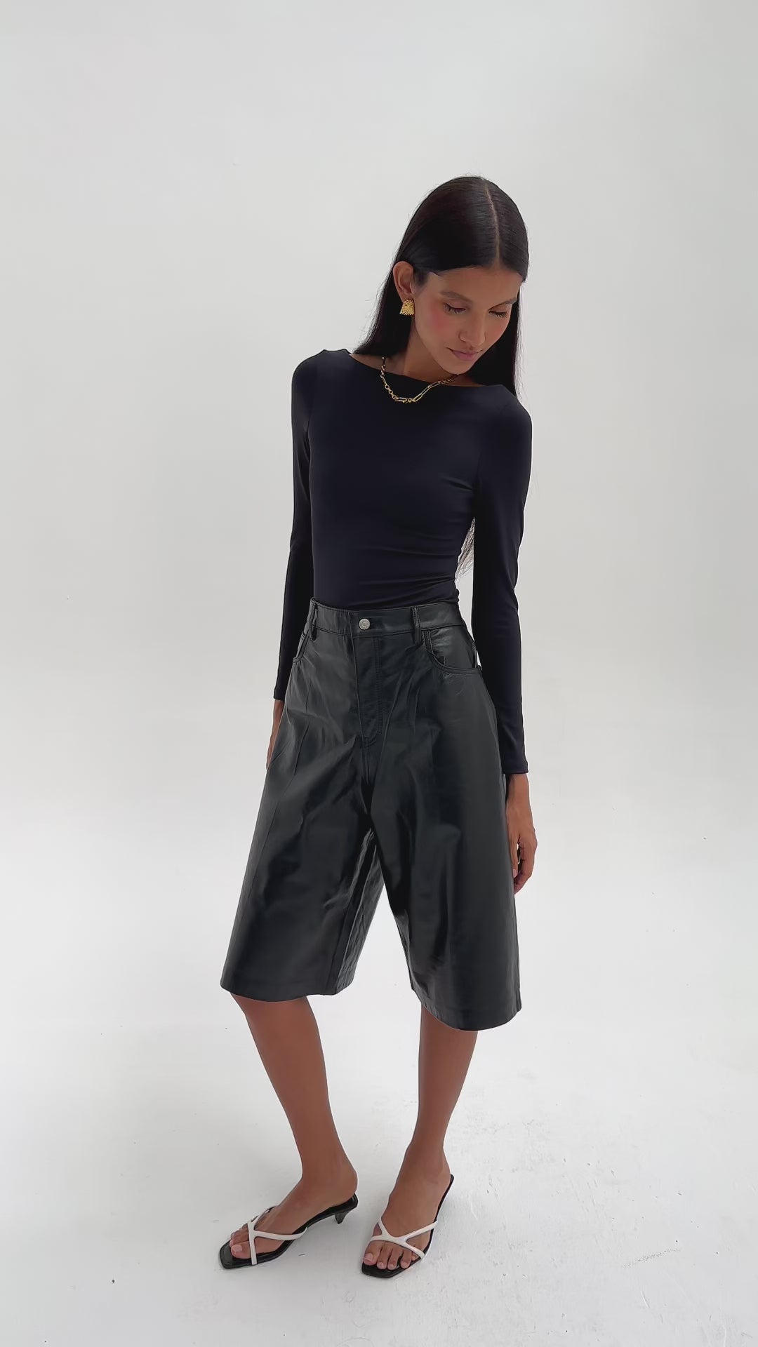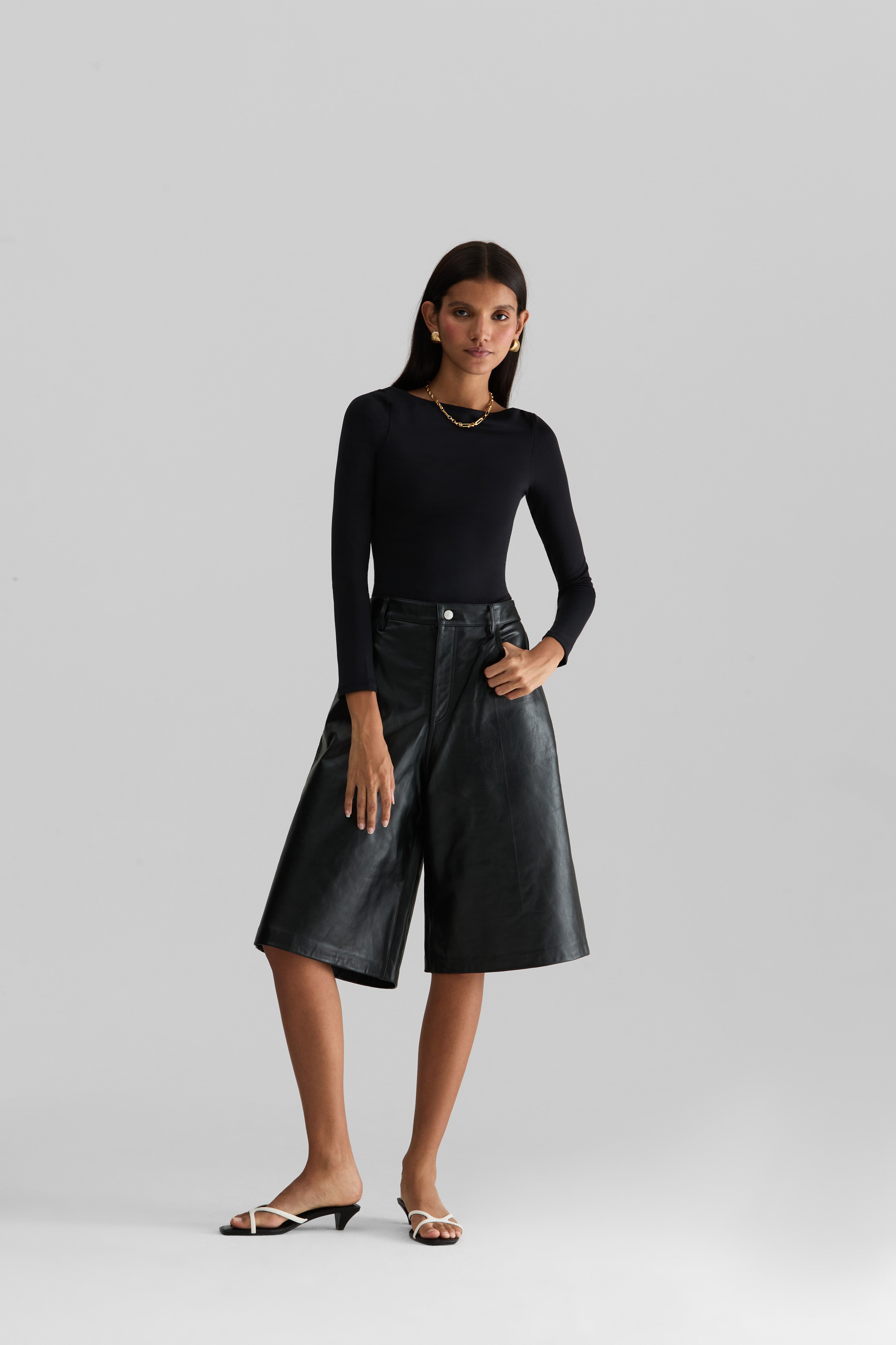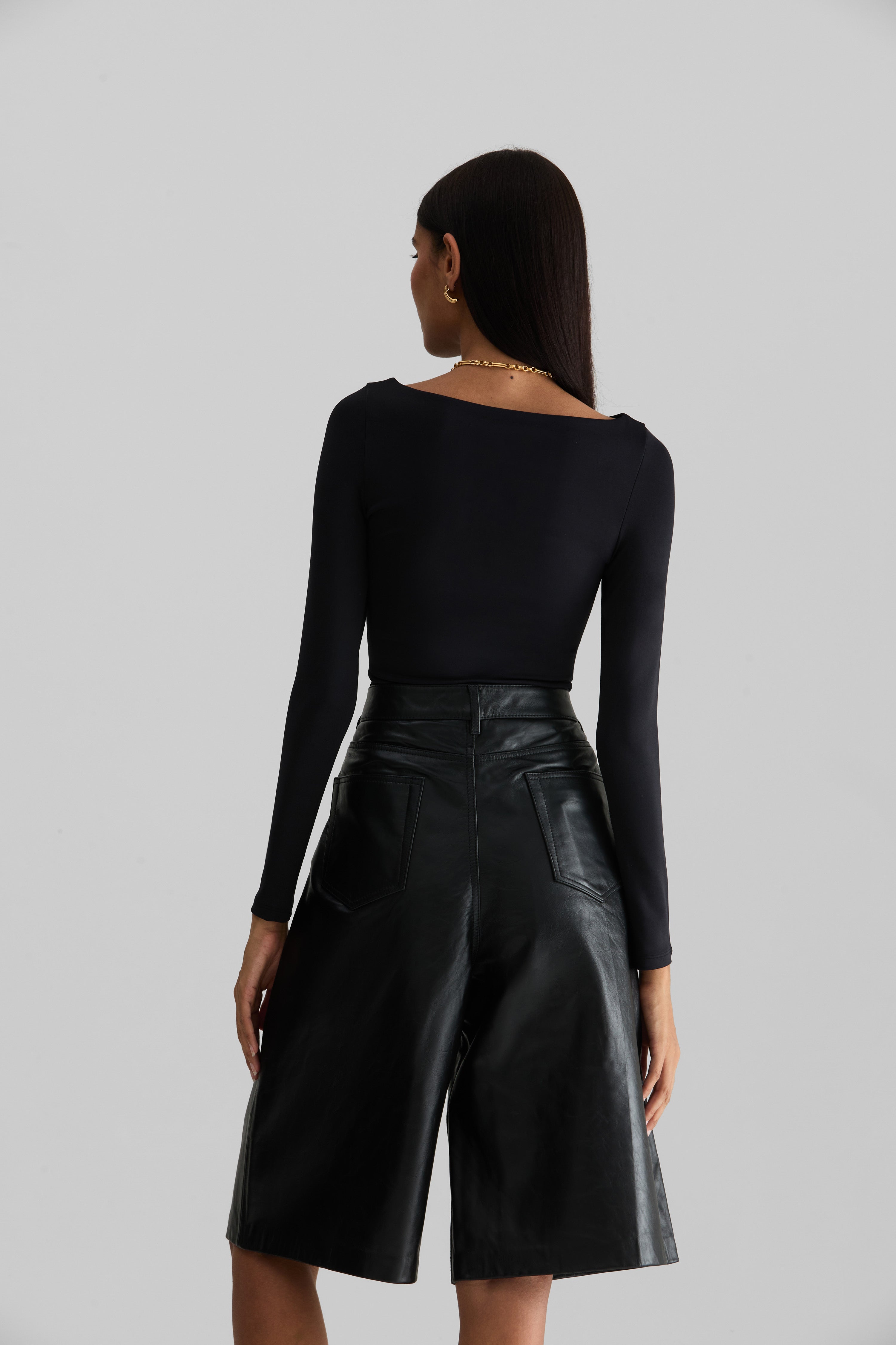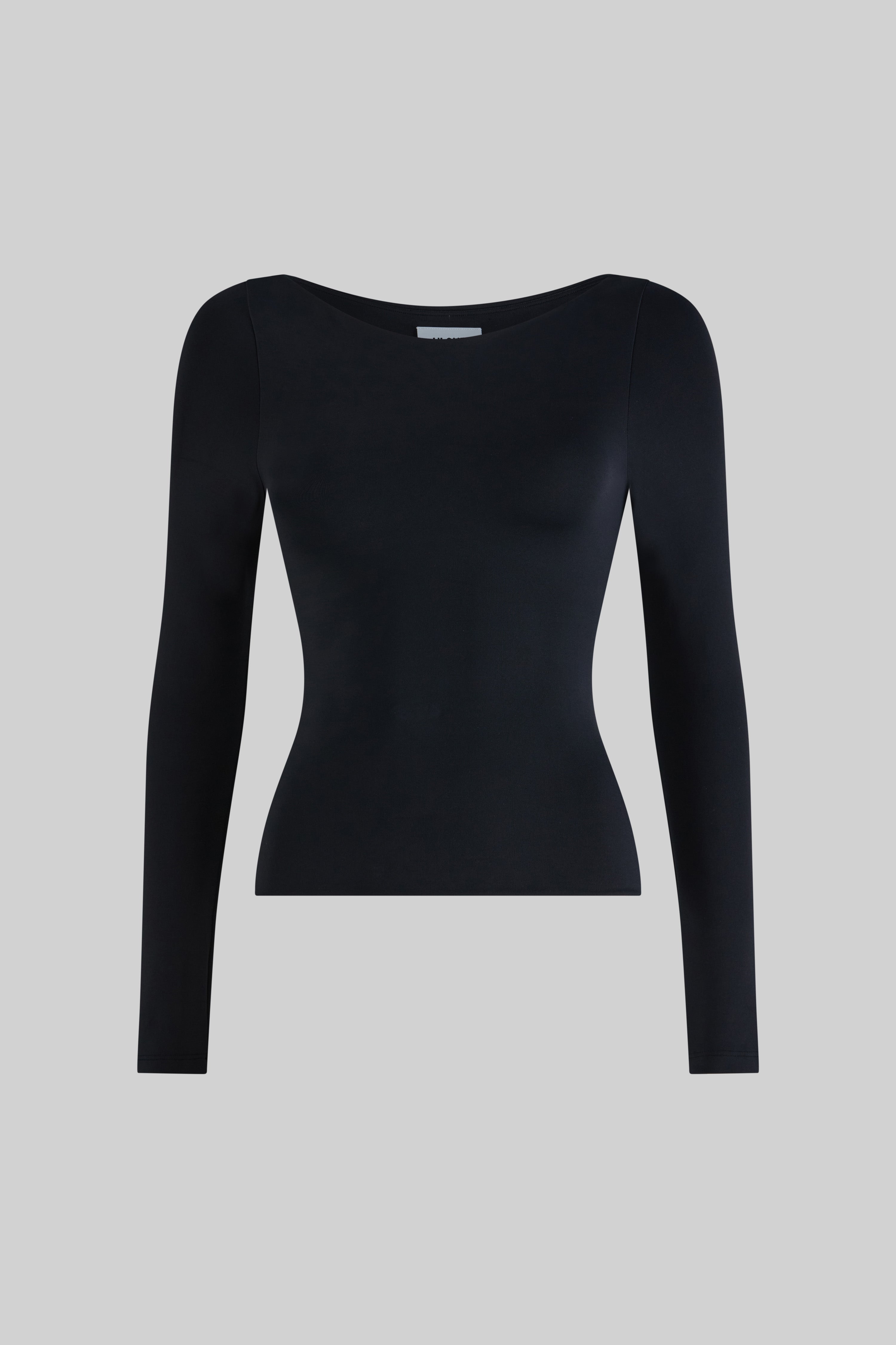 Level up your everyday wardrobe with our Slash Long Sleeve Top. The demure shape of the neckline perfectly frames the neck and shoulders, while the long sleeves and fitted KLAY fabric offer a sculpting silhouette. Wear with jeans, or pair with our Midi Skirt for head-to-toe elegance.